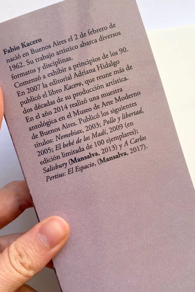 Todos los artistas, de cualquier disciplina que sean, en algún momento se enfrentan al mismo problema: dar con el tronco de lo esencial, donde en principio no hay nada, donde no pasa nada, donde nada atrae a nadie, y no detenerse por eso, o ir directamente por la rama del efecto, del pintoresquismo, del tema, una rama mucho más rápida y siempre rica en fuegos artificiales, en explosiones de singularidades aceptadas de antemano, y que lleva a todo el mundo al mismo lugar. Kacero es de los primeros. Una maravilla y un misterio, las dos cosas a la vez. ¿Cómo puede ser que un artista visual que nunca había escrito nada se convierta de pronto (lo imagino lápiz en mano, acercándose a una libreta igual que un cirujano a un pedazo de carne) en uno de los mejores escritores contemporáneos? No tengo la respuesta, pero me hace acordar a un poema de Francis Picabia: “Los ojos de los gatos que miran a los pájaros / son ojos que piensan. / Los ojos de los pájaros que miran a los gatos / son ojos que dudan. / Mis ojos se cierran / para meditar sobre los milagros”.
