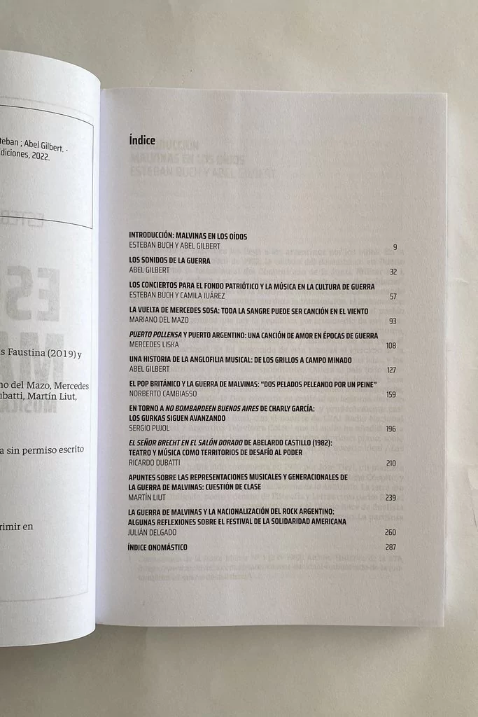 La música y el sonido suelen ser piezas poco tenidas en cuenta a la hora de intentar armar el puzzle de la historia social y política. Escuchar Malvinas propone extender la historia cultural del conflicto a la cultura de la guerra de los civiles, a partir del estudio de la música, de quienes la producen y de quienes la escuchan.