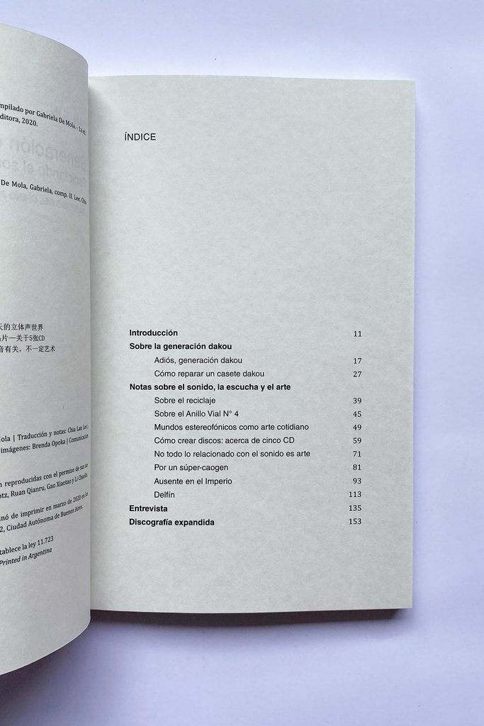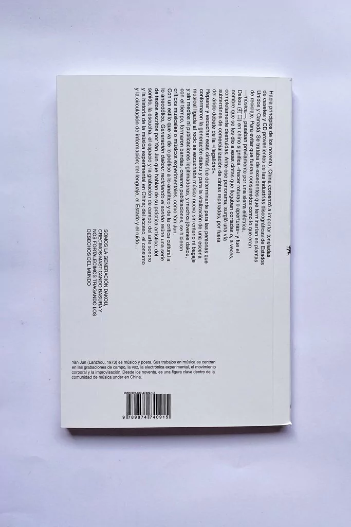 Con un estilo que va de lo poético a lo analítico y de la crítica cultural a lo anecdótico, «Generación dakou: reciclando el sonido» reúne una serie de textos escritos por Yan Jun que hablan de su práctica artística; del sonido, la escucha, el espacio y la grabación de campo; del arte sonoro y la historia de la música experimental en China; del arte, el acceso, el consumo y la circulación de información; del lenguaje, el Estado y el ruido…