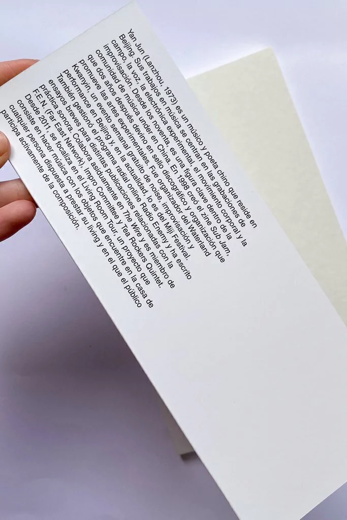 Yan Jun (Lanzhou, 1973) es músico y poeta. Sus trabajos en música se centran en las grabaciones de campo, la voz, la electrónica experimental, el movimiento corporal y la improvisación. Desde los noventa, es una figura clave dentro de la comunidad de música under en China.