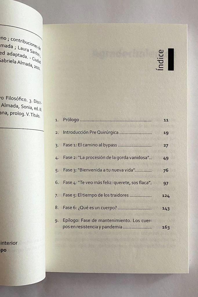 En este libro, Lux Moreno cuenta el viacrucis que significó someterse a un bypass gástrico para evitar una enfermedad. Su escritura está alejada de los folletos promocionales de la clínica de gordos: narra el antes y el después, las cicatrices, las vitaminas y la forma en la que transitó de un cuerpo gordo a uno delgado, pero débil.