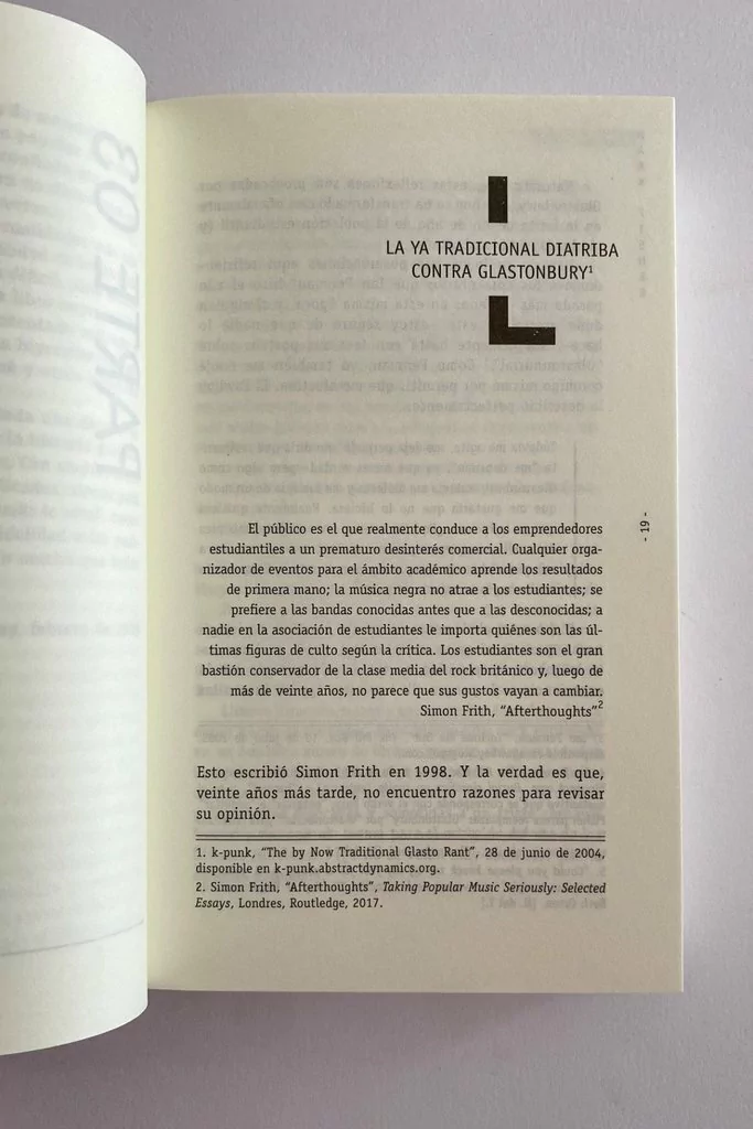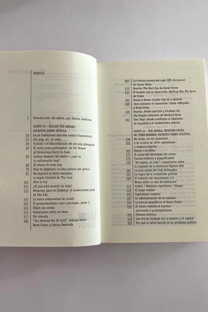 La coincidencia de la música y la política en este segundo volumen de los escritos de Mark Fisher podría parecer arbitraria. Sin embargo, ese cruce será fundamental para lograr lo que él consideraba un objetivo estratégico: superar el efecto alienante del pensamiento académico y la estética deslibidinizante de la izquierda. Tanto el laboratorio de escritura experimental que fue durante los años ochenta la prensa musical británica como aquellos episodios electrificantes en los que la música popular se convirtió en un catalizador para las tendencias colectivas y sensibilidades radicales son las bases sobre las que Fisher edificó un proyecto que se proponía volver a conectar la crítica cultural con un programa político. El glam de clase trabajadora de bandas como Roxy Music o Visage, el modernismo pulp de The Fall, el culto suburbano a bandas góticas como The Cure, el sonido alienígena del jungle o los paisajes sónicos post-rave de Burial proporcionarán modelos para escapar del agotamiento de la imaginación que impone el realismo capitalista.