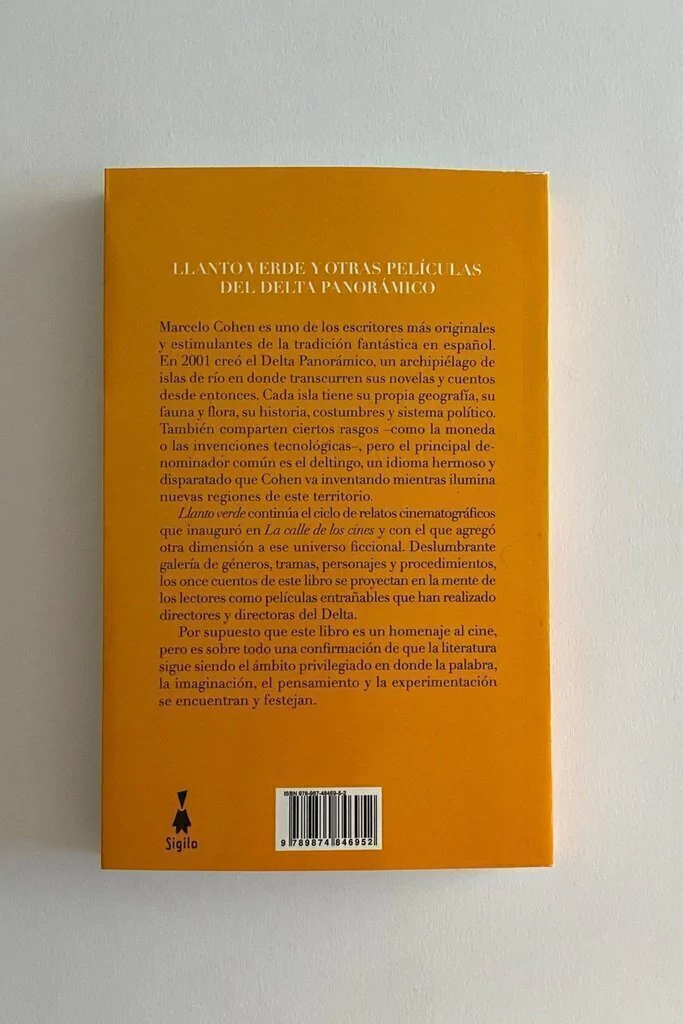 Llanto verde continúa el ciclo de relatos cinematográficos que inauguró en La calle de los cines y con el que agregó otra dimensión a ese universo ficcional. Deslumbrante galería de géneros, tramas, personajes y procedimientos, los once cuentos de este libro se proyectan en la mente de los lectores como películas entrañables que han realizado por directores y directoras del Delta.