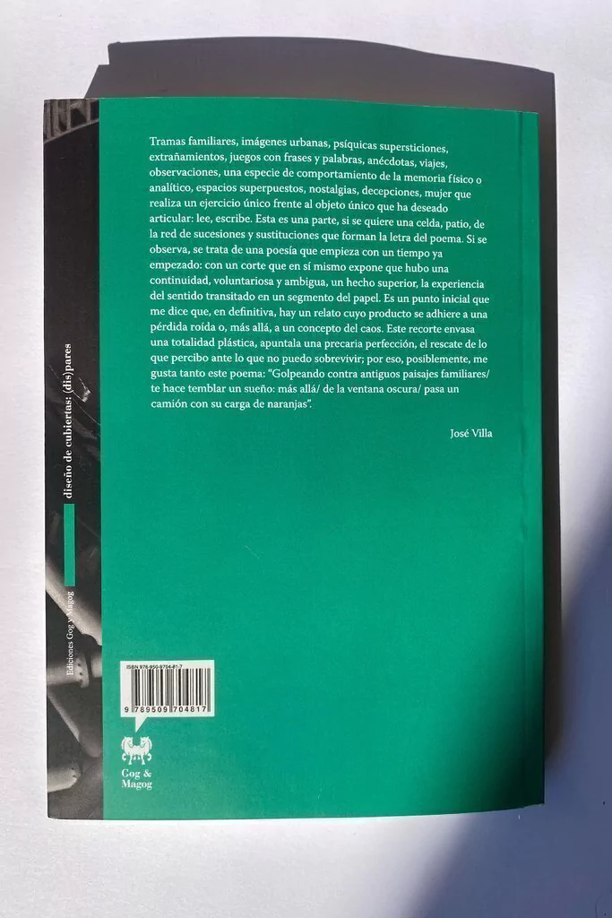 Tramas familiares, imágenes urbanas, psíquicas supersticiones, extrañamientos, juegos con frases y palabras, anécdotas, viajes, observaciones, una especie de comportamiento de la memoria físico o analítico, espacios superpuestos, nostalgias, decepciones, mujer que realiza un ejercicio único frente al objeto único que ha deseado articular: lee, escribe. Esta es una parte, si se quiere una celda, patio, de la red de sucesiones y sustituciones que forman la letra del poema.