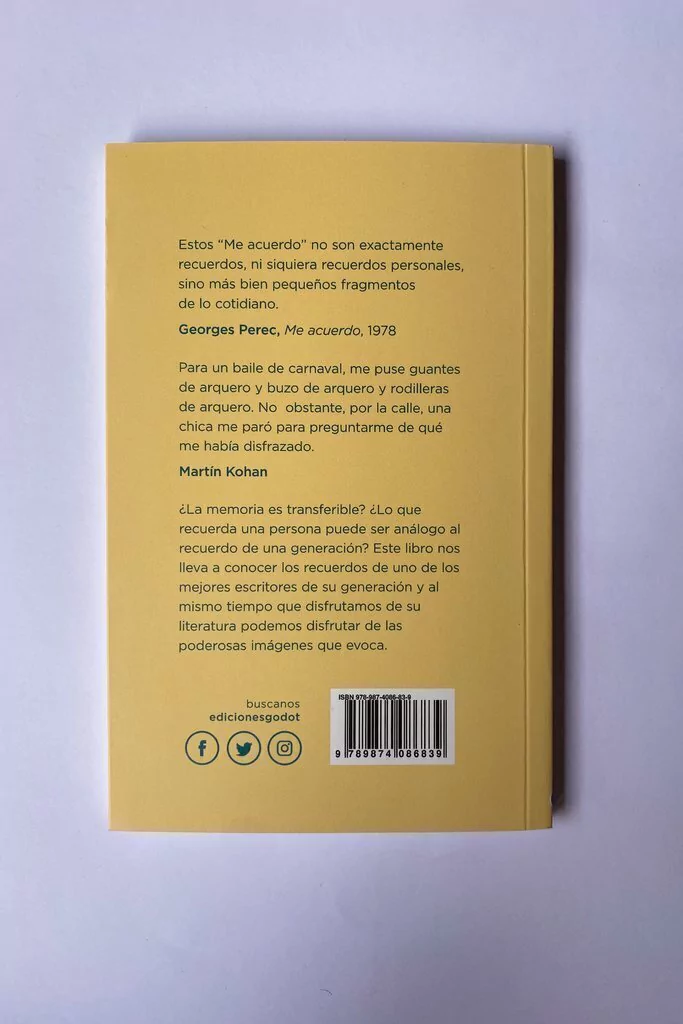 ¿La memoria es transferible? ¿Lo que recuerda una persona puede ser análogo al recuerdo de una generación? Este libro nos lleva a conocer los recuerdos de uno de los mejores escritores de su generación y al mismo tiempo que disfrutamos de su literatura podemos disfrutar de las poderosas imágenes que evoca.