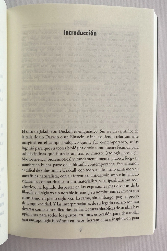 Jacob von Uexküll es como un fantasma que recorre el pensamiento. Maldecido y celebrado, permaneció siempre inclasificable, ubicuo y rebelde a las grillas habituales de las disciplinas. En todos los casos, insiste con su presencia. Prueba de ello es que, más allá de su inscripción en la biología, supo transponer fronteras hacia muchos campos, contemporáneos e incluso futuros (como la biosemiología, de la que se lo reconoce a posteriori como precursor). A su vez, supo ponerse en boca de toda la filosofía, en especial la alemana y francesa del siglo XX. Pero también traspasó y promete traspasar otros límites, espaciales y temporales.