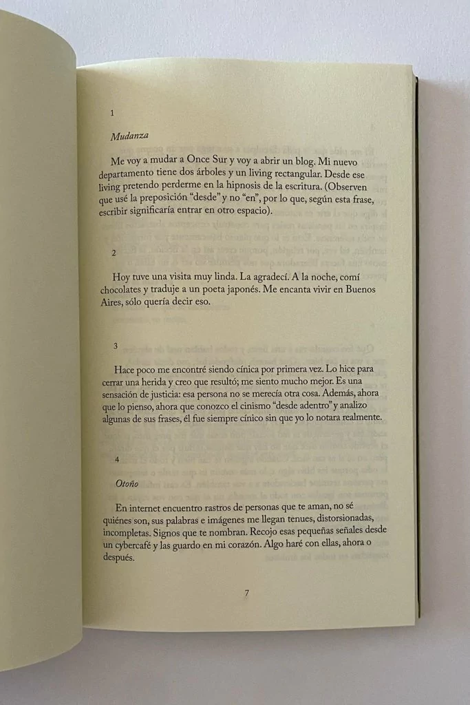 Ya se ha comentado ad infinitum los vínculos entre el blog y el diario íntimo. Pero Once Sur es otra cosa: una canción, un poema, un espejo. Es literatura en su forma más rápida, auto-referencial y libre. Por eso, es a la vez una mezcla de ciertos avances tecnológicos con los deseos más arcaicos que han nutrido la literatura a través de los siglos. Sin embargo, sus medios son los de la sencillez y la claridad, porque Cecilia Pavón busca en el clasicismo otra forma de la belleza. Esto no quiere decir que el registro emocional de este libro sea siempre feliz, ya que entre sus textos y sus fotos, y aún sus noticias de eventos, hay una especie de tristeza ante las confusiones de un mundo personal, a veces sin sentido. Once Sur es una cruza entre las cuevas de Lascaux, un club punk y una iglesia bombardeada llena de pájaros. Y yo me pregunto: ¿a dónde nos lleva la lectura de este libro? ¿Cuál es el mundo que Cecilia Pavón ha construido en todos estos años?