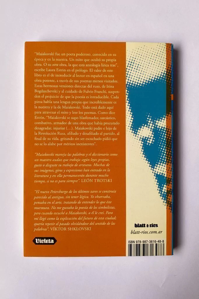 Maiakovski fue un poeta poderoso, conocido en su época y en la nuestra. Un mito que ocultó su propia obra. O su otra obra, la que esta antología lírica trae”, escribe Laura Estrin en el prólogo. El valor de este libro es el de introducir al lector en español en una obra potente, a través de sus poemas menos visitados. Estas hermosas versiones directas del ruso, de Irina Bogdaschevski y al cuidado de Fulvio Franchi, suspenden el prejuicio de que la poesía es intraducible. Cada pieza habla una lengua propia que increíblemente es la nuestra y la de Maiakovski. Todo está dado aquí para atravesar el mito y leer los poemas. Como dice Estrin, “Maiakovski se supo blasfemador, sarcástico, combativo, armador de una obra que había procurado desagradar, injuriar (…). Maiakovski padre e hijo de la Revolución Rusa, afiliado y desafiliado al partido, al final de su vida, gritando sin ser escuchado pidió que no se lo alabe por méritos inexistentes.