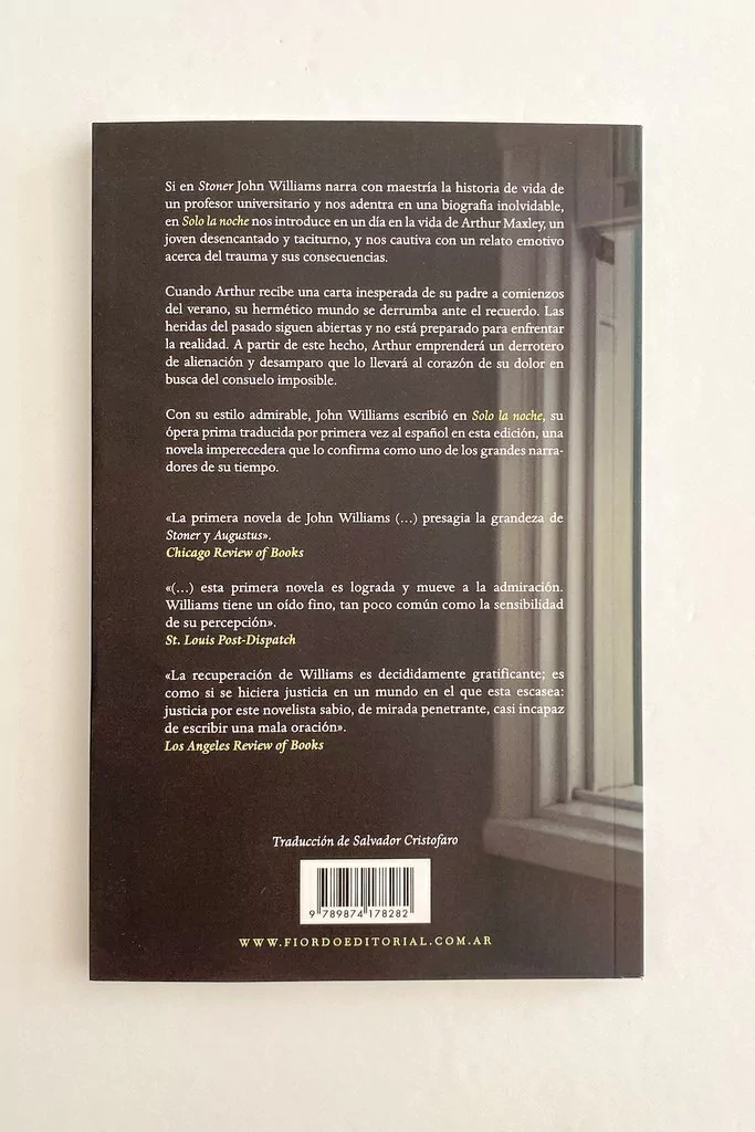 Si en Stoner John Williams narra con maestría la historia de vida de un profesor universitario y nos adentra en una biografía inolvidable, en Solo la noche nos introduce en un día en la vida de Arthur Maxley, un joven desencantado y taciturno, y nos cautiva con un relato emotivo acerca del trauma y sus consecuencias.